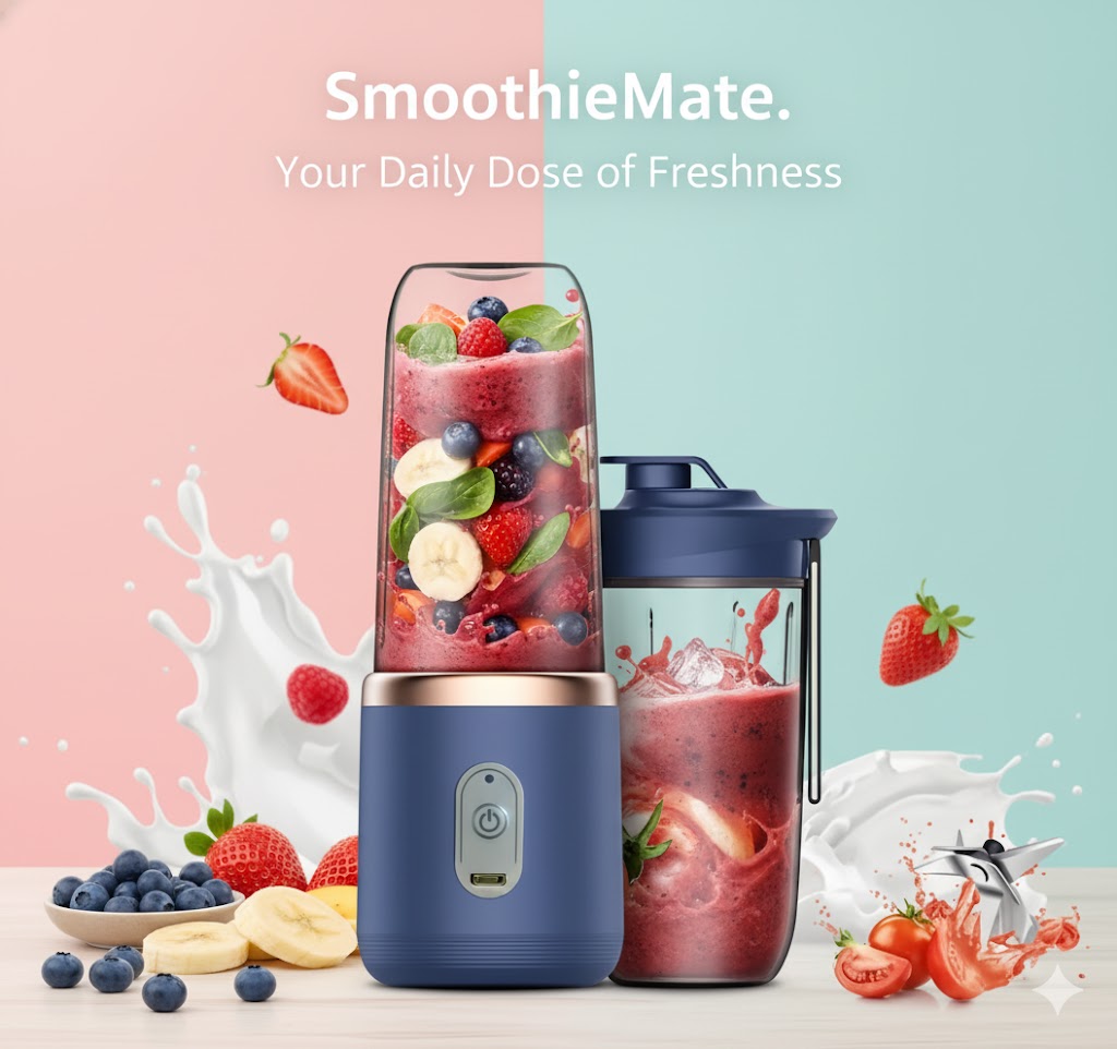 Start your day with a burst of freshness. The SmoothieMate Portable Blender lets you enjoy perfectly blended smoothies and juices anytime — at home, at work, or outdoors. Powerful, compact, and effortless — your healthy lifestyle starts here.